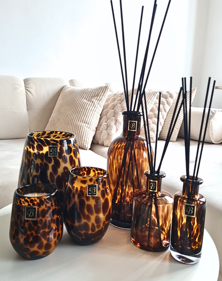 Présentée en trois formats de bougies et trois diffuseurs à bâtonnets, la Safari Chic Collection s’adapte à tous les espaces et toutes les envies.