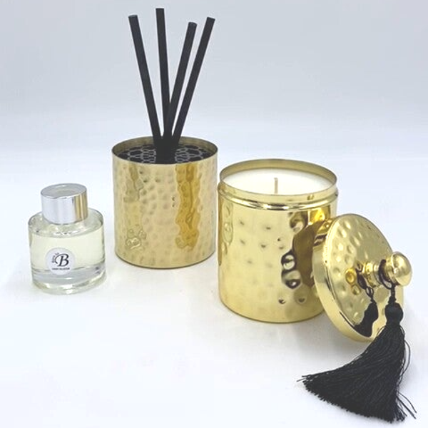 Luxury set consisting of a handcrafted scented candle and a handcrafted stick diffuser presented in a luxury magnetic box.