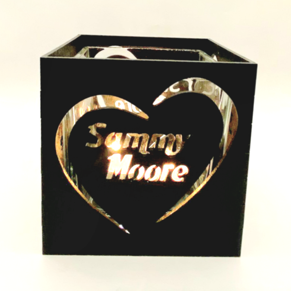 Photophore en bois personnalisé (naissance, mariage, anniversaire)
