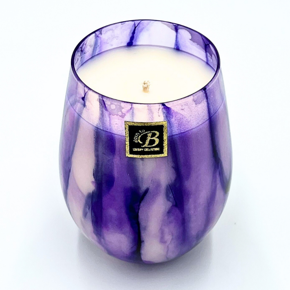 Laissez parler votre côté fun et décomplexé. La Rainbow Purple est une invitation à la joie de vivre dans un écrin en verre arty et vibrant. Un tie-dye violet hypnotique qui transforme chaque pièce en terrain de jeu chic et parfumé.