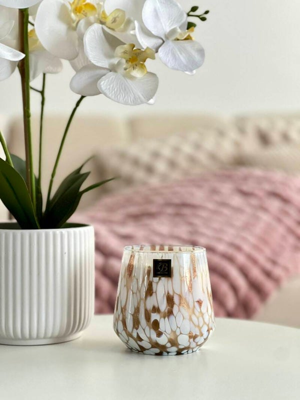 Bougie parfumée de 400g | 1 mèche en coton | Hauteur: 10 cm · Ø : 9 cm | Temps de combustion : ± 65h
