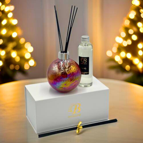 Élaborés dans de superbes flacons en verre soufflé à la bouche et peints à la main, ces diffuseurs sont de véritables œuvres d’art artisanales, garantissant un caractère unique à chaque pièce. Chaque diffuseur est accompagné de 200 ml de parfum exquis et de bâtonnets en fibres noirs, assurant une diffusion homogène et élégante des fragrances.