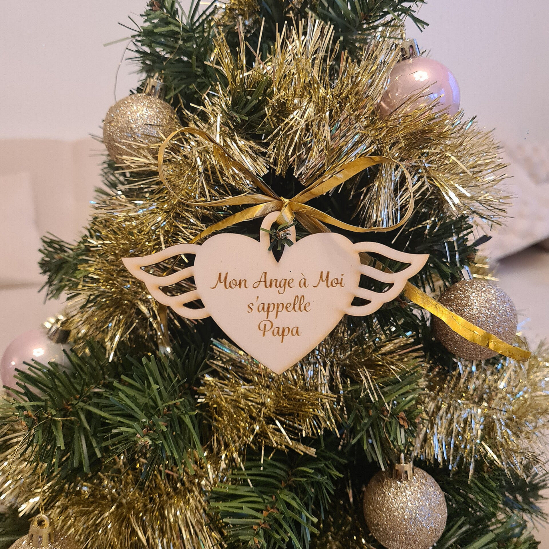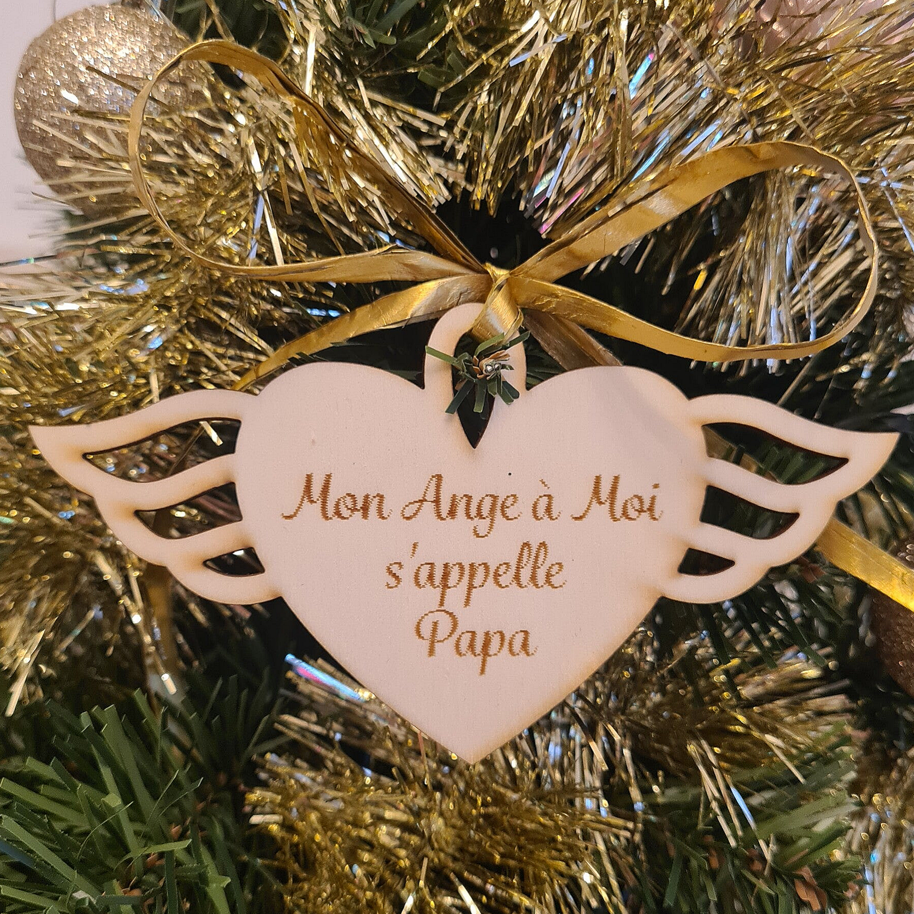 Boule de Noël coeur et ailes avec texte au choix gravé
