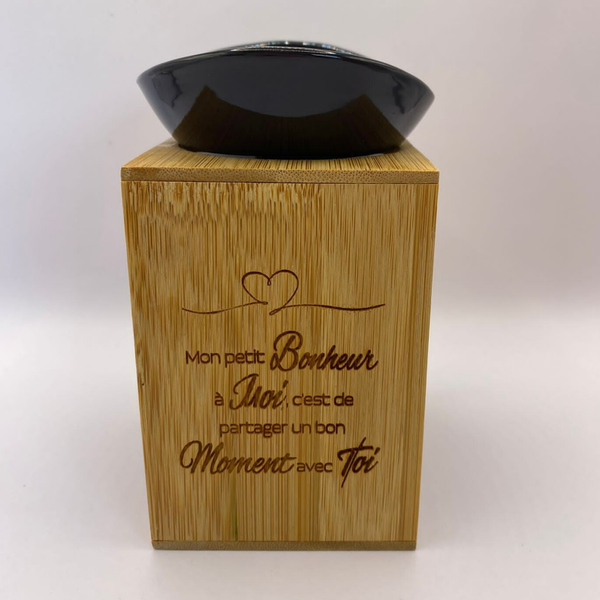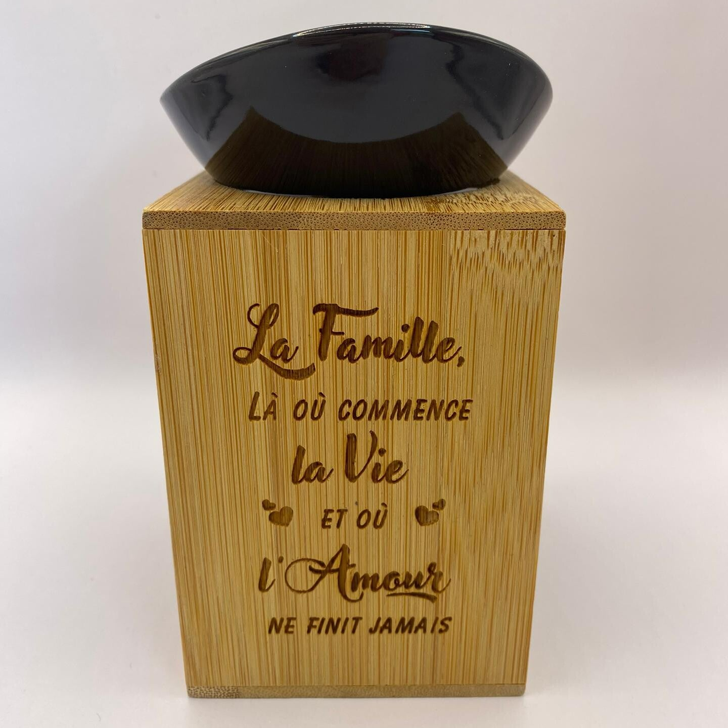 Joli brûleur de fabrication artisanale en bambou avec coupelles en céramique amovibles noire. Plusieurs modèles disponibles.