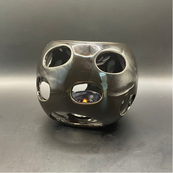 Perfume burner in black lacquered ceramic. Its original design allows the candle to glow to create a warm atmosphere.