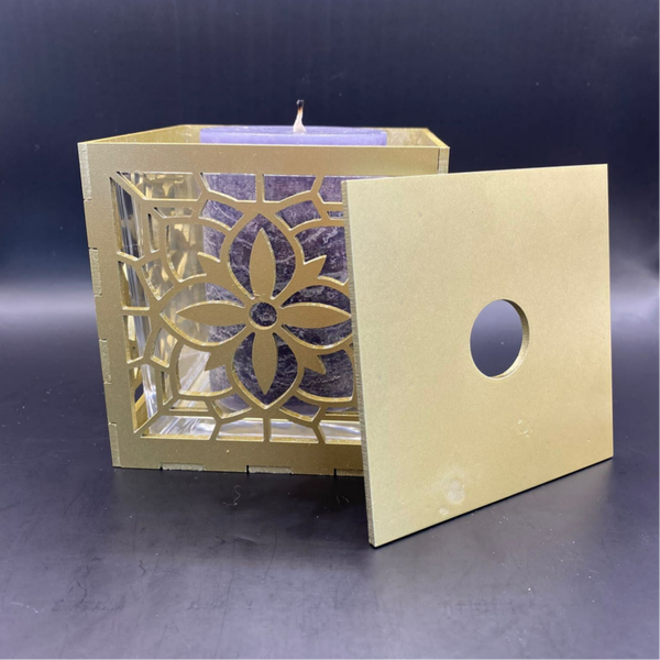 A 10 x 10 cm clear cube glass is included in your wooden candle holder.