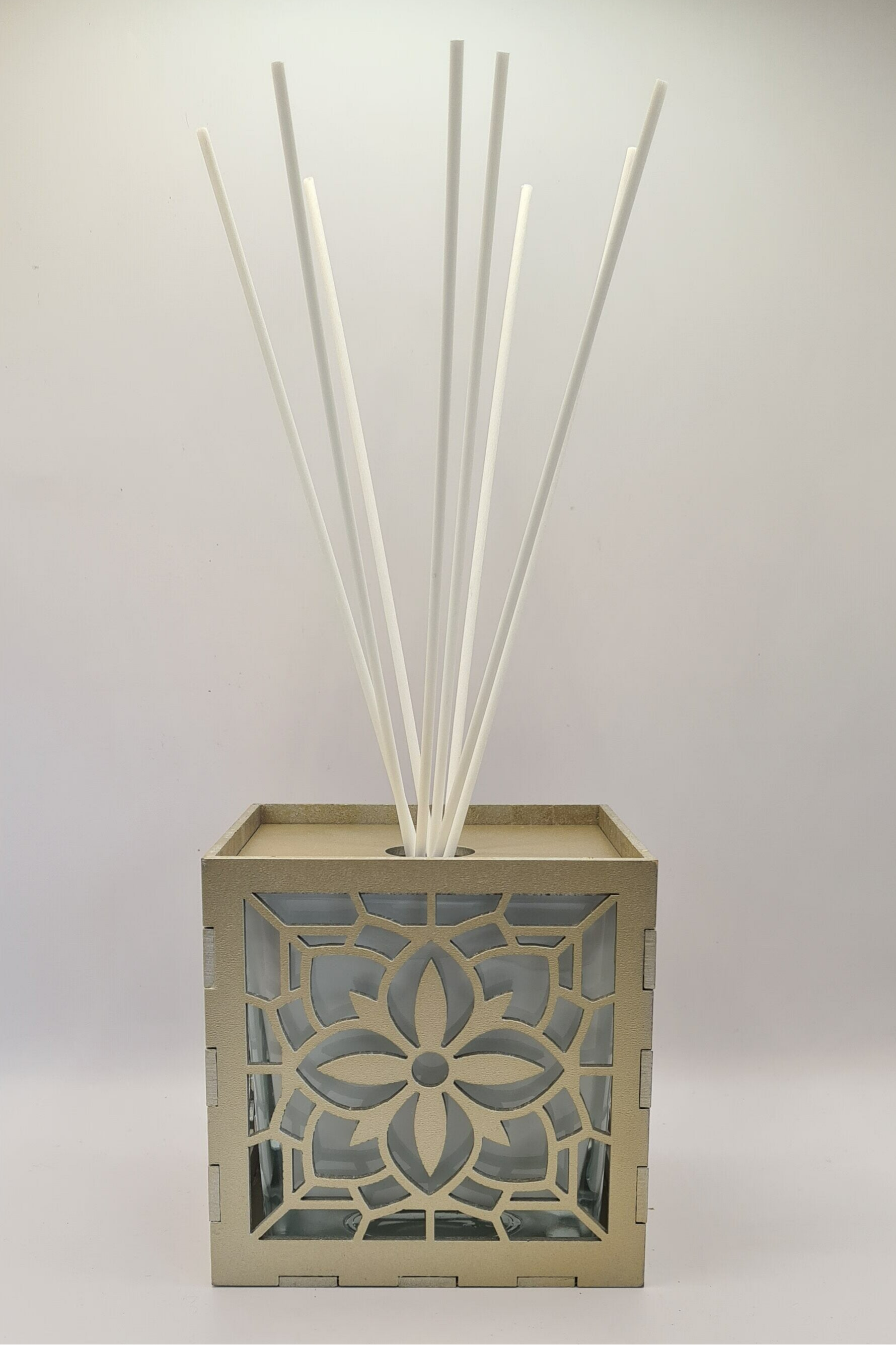 - la transformation de votre photophore en système de diffusion à bâtonnets incluant une recharge de parfum et les bâtonnets en rotin (soit blanc, soit noir)